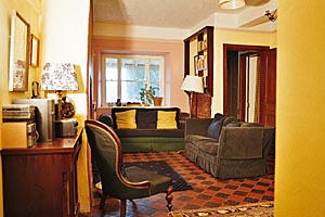 Ground floor only | Living room with two sofas and chairs. Woodburning stove which heats radiators in double bedroom and hall. Small TV with video/DVD player. CD and radio, CD's and books.